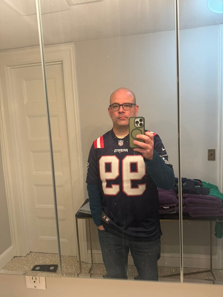 I’m going to oscillate between essays about Claude Code, explainers about Claude Code and video tutorials using Claude Code. Today is an essay. Like the other Claude Code posts, this one is free to everyone, but note that after a few days, everything on this substack goes behind a paywall. In the mean time, though, let me show you a progression of pictures of me trying to support the Patriots on Sunday by wearing all of the Boston sports memorabilia I own. Sadly, it did not help at all — or did it? What would the score have been had I not wore all this I wonder?
